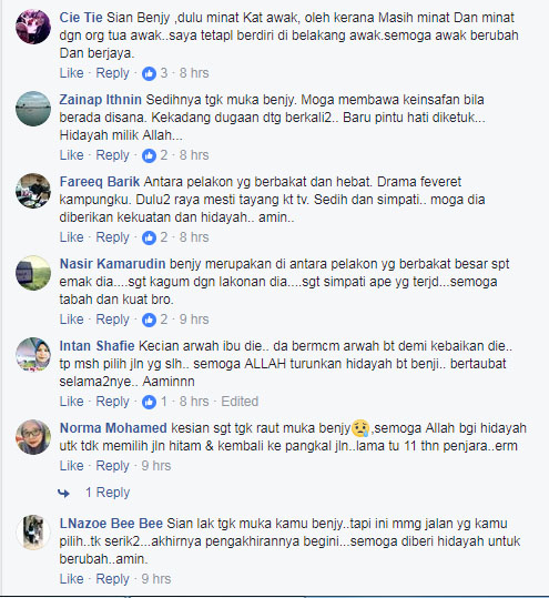 Sementara itu reaksi netizen di media sosial, meluahkan rasa simpati dan berharap agar Benjy mengambil peluang ini untuk bertaubat.