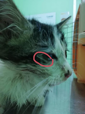 Mujur ada individu yang prihatin menemuinya dan segera membawa kucing itu ke klinik veterinar untuk mendapatkan rawatan.