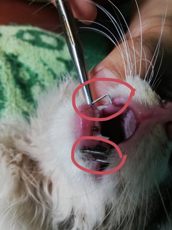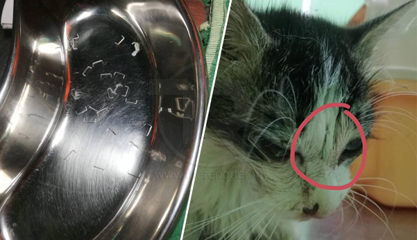 Kejam dan entah apa yang difikirkan si pelaku yang tergamak menyerang dan mencederakan seekor kucing dengan dawai kokot (stappler) di seluruh badannya.