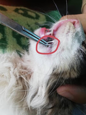 Menurut pengendali laman Facebook Klinik Veterinar Qaimeera di Bangi, anak kucing yang malang itu ditemui dalam keadaan seluruh badannya dipenuhi dengan dawai kokot, termasuk di dalam mulutnya.