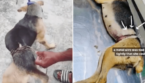 Tergamak individu terbabit melilit pinggang haiwan itu dengan dawai besi dengan ketat menyebabkan anjing itu cedera dan sukar untuk duduk atau baring.