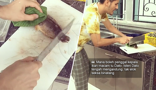“Mana boleh penggal kepala ikan macam tu Dato. Isteri Dato tengah mengandung, tak elok seksa binatang,” – Cik Sue Qelate.