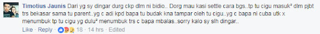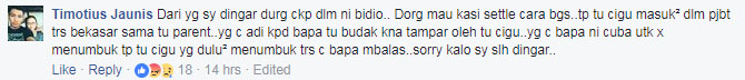 Menurut seorang lagi netizen, Timotius Jaunis, dua lelaki berkenaan pada awalnya mahu menyelesaikan kes itu secara baik. Malangnya guru berkenaan mula berkasar dengan mereka.