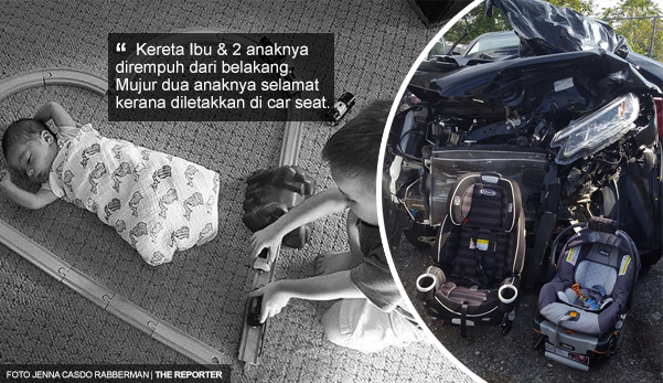 Langsung tak terfikir kejadian/kemalangan seperti ini akan berlaku pada kami. Anak lelaki saya selamat dan tidak mengalami sebarang kecederaan. Namun menurut paramedik, keadaan mungkin berbeza jika saya tidak meletak dan memastikan anak-anak saya duduk di kerusi khas kanak-kanak itu dengan baik.