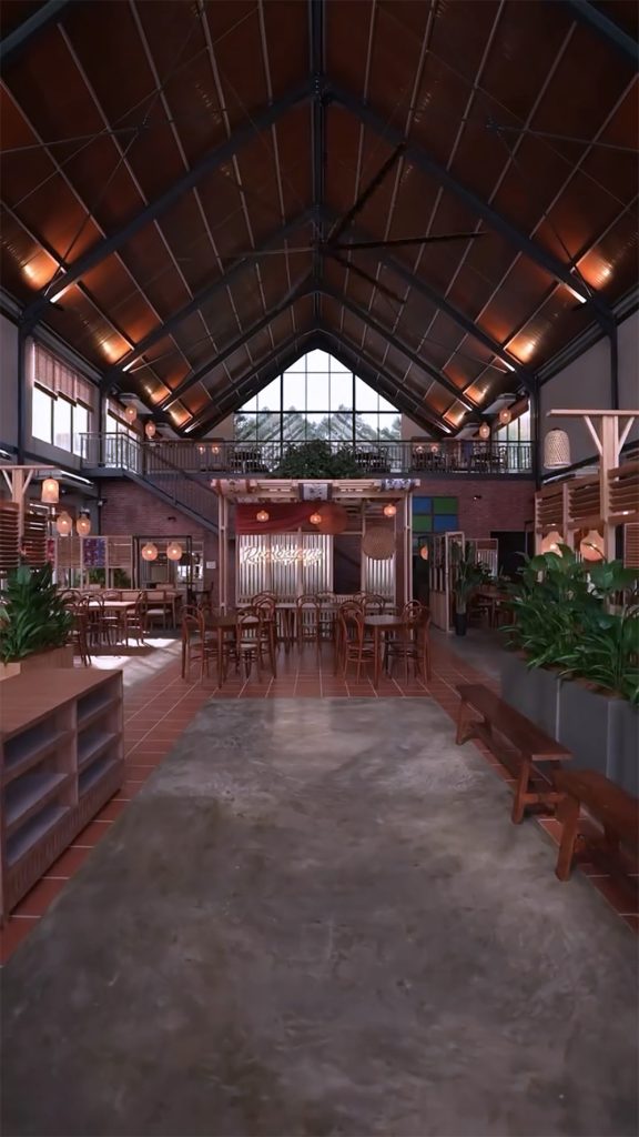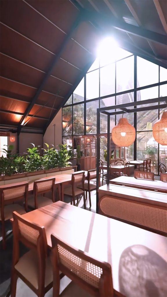 “Untuk konsep restoran ini, kita nak angkat elemen kampung di tengah-tengah kota raya. Jadi kita banyak bermain dengan elemen-elemen kayu, daun hijau, angin bertiup sepoi-sepoi bahasa,” katanya.