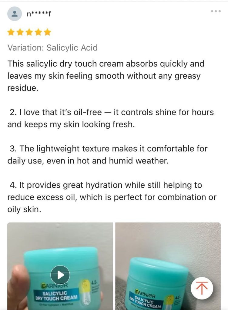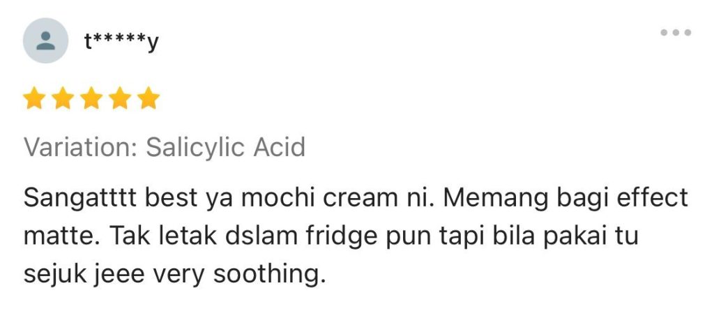 Seorang lagi individu mengatakan apabila menggunakan krim ini, dia dapat melihat efek matte dan merasa kulit semakin lega dan sejuk setiap kali pemakaian.