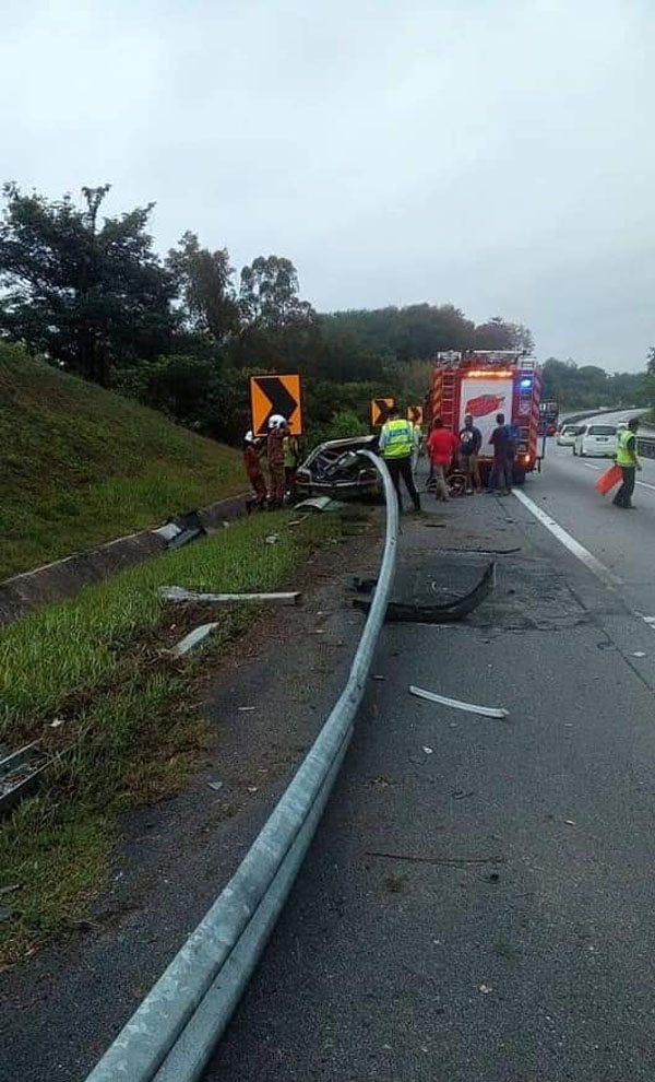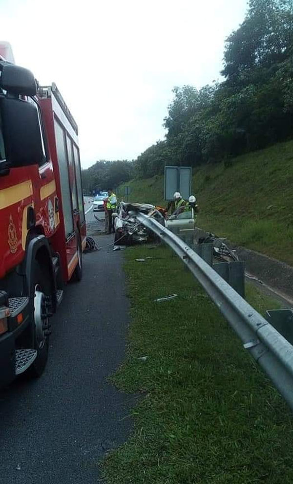 Muhammad Azry Izwan Rohaizad, 22, tersepit dan parah di bahagian pemandu dilaporkan maut di lokasi kejadian.
