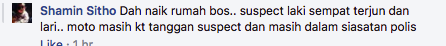 “Sekarang gua cari lu. Lu standby saja. Lu rembat moto adek gua. Dia penat-penat kerja, lu rembat moto dia ek?,” tulisnya di Facebook pada 31 Ogos lalu.