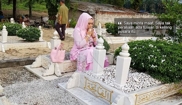 “Saya minta maaf. Saya tak perasaan ada tulisan di keliling pusara itu. Saya duduk memandangkan tak bawa kerusi. Takkan nak duduk mencangkung pula.