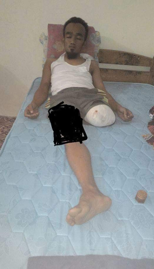 Lebih 12 jam dalam bilik bedah, hilang darah banyak, kritikal hilang darah. Keadaan baru lepas pembedahan juga, memang tak dapat nak bangun, emosi tak stabil lagi. Berat kaki kiri yang dipotong nak angkat. Baring sajalah. Pakai pampers dan kalau bernajis, isteri yang cucikan. Suap makanan dan minuman, isteri kena buat. Lapkan badan saya dengan air. Anak pula masih kecil.