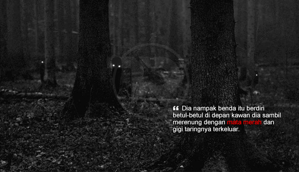 Sampai saja mawas itu di depan muka atuk aku, dengan giginya yang tajam, mata merah dia merenung, tangan dia naik tinggi dan terus tepuk bahu atuk aku kuat-kuat.