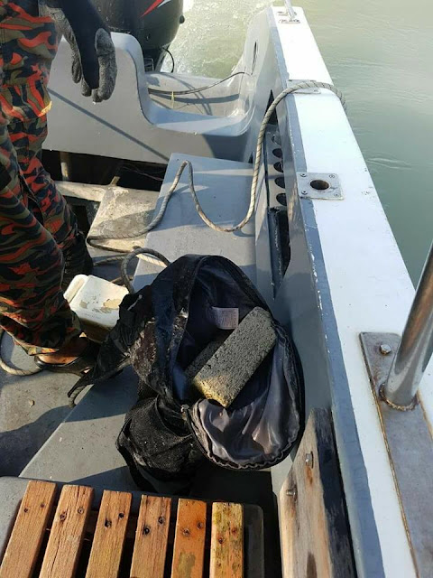 Berdasarkan gambar perkongsian dari netizen di media sosial, beg sandang yang dipakai oleh Mohd Shukri diisi dengan batu konkrit yang dipercayai digunakan sebagai pemberat.