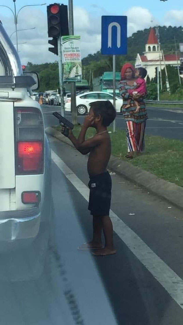 Susulan viral video seorang kanak-kanak meminta sedekah dengan menggunakan pistol di persimpangan lampu isyarat di Bandar Sri Perdana, Lahad Datu, polis menahan 15 individu termasuk kanak-kanak itu pagi tadi.
