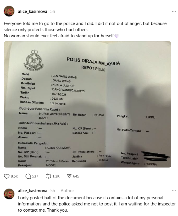 - Model Rusia buat laporan polis, dirakam TikToker buat live berunsur lucah