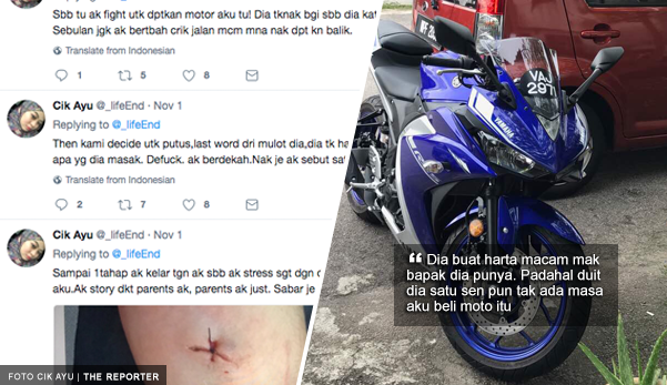 Then kami decide untuk putus. Last word dari mulut dia, ‘Saya takkan halalkan apa yang awak makan dan apa yang saya masak’. Def*ck! Aku berdekah-dekah, nak je aku sebut satu persatu. Sebab itu aku fight untuk dapatkan motor aku itu. Dia tak nak bagi sebab dia kata motor itu atas nama dia. Sebulan juga aku bertabah mencari jalan macam mana nak dapatkan balik.