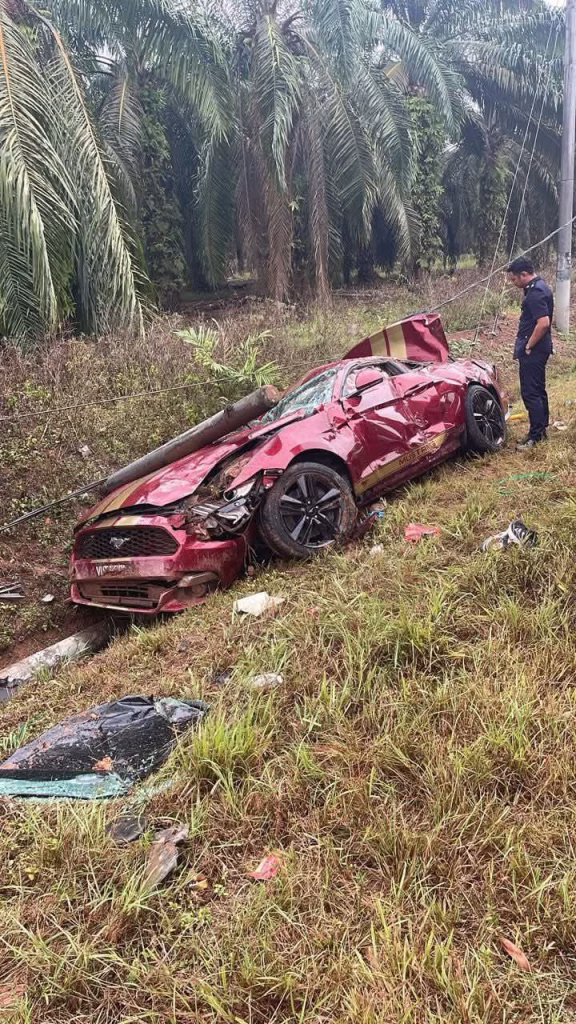 Sepasang suami isteri maut selepas kereta jenis Ford Mustang yang dinaiki mereka terbabas dan merempuh dua tiang elektrik dalam nahas di Kilometer 13, Jalan Segamat-Kuantan, berhampiran simpang Felda Pemanis, pada Isnin.