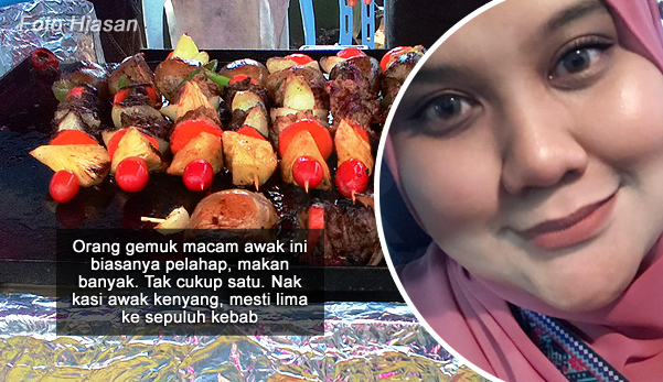 “Satu? Ambillah lima. Orang gemuk macam awak ini biasanya pelahap, makan banyak. Tak cukup satu. Nak kasi awak kenyang, mesti lima ke sepuluh kebab!” kata peniaga itu sambil tergelak sinis pada saya di depan rakan-rakannya.