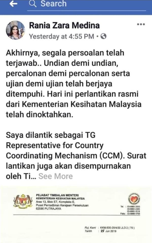 Individu bernama Rania Zara Medina itu turut memuat naik surat perlantikannya di Facebook dan mengundang pelbagai reaksi netizen yang mempersoalkan tindakan KKM itu yang dianggap mengiktirafkan golongan LGBT.
