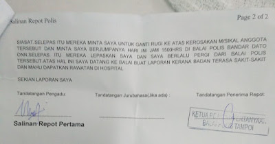 Berikut laporan polis yang telah dibuat oleh Mohamad Muslihin: