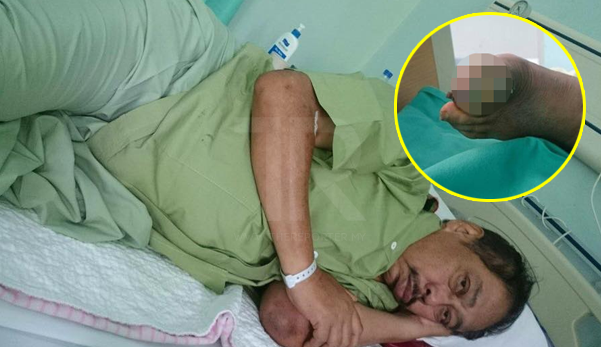 Menurut Reza Shamsudin, anak kepada mangsa berkata, bapanya baru saja dipotong ibu jari kaki akibat kencing manis, ditimpa pula masalah seperti ini.