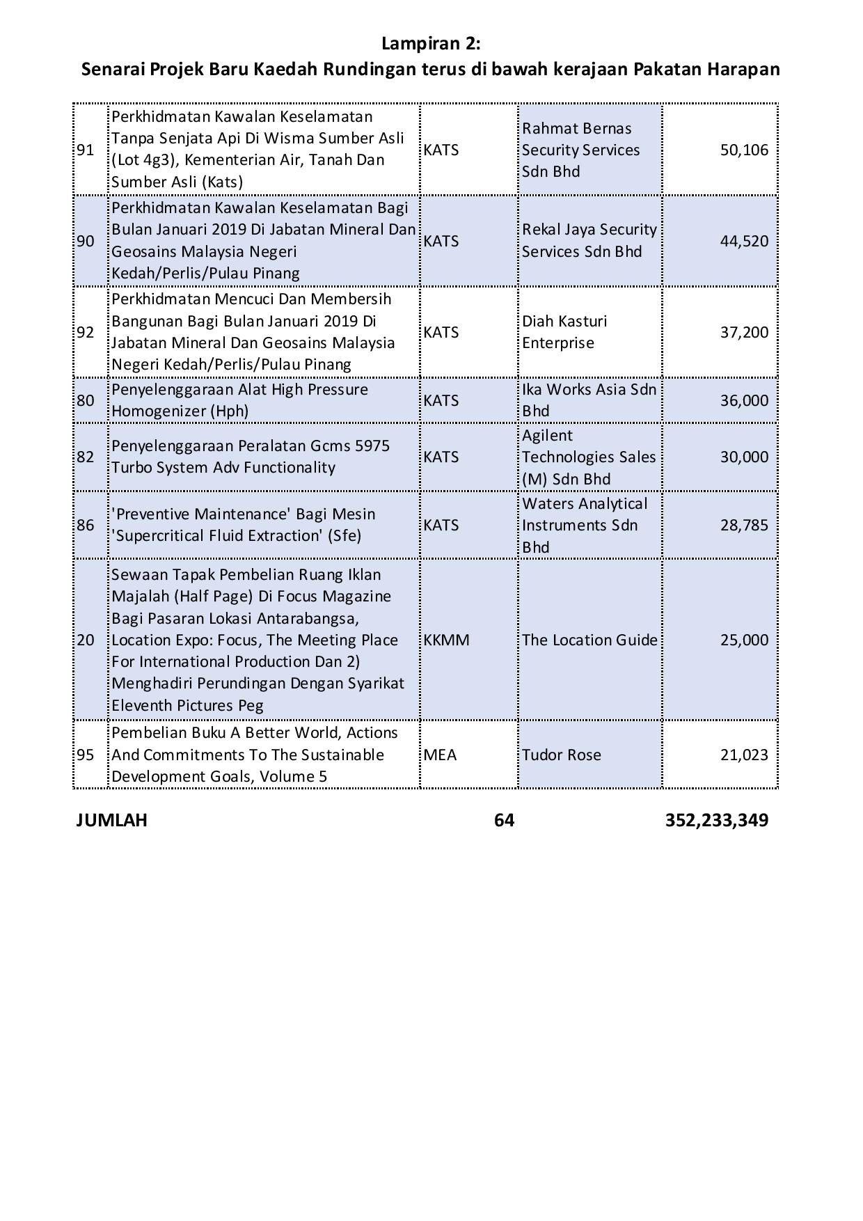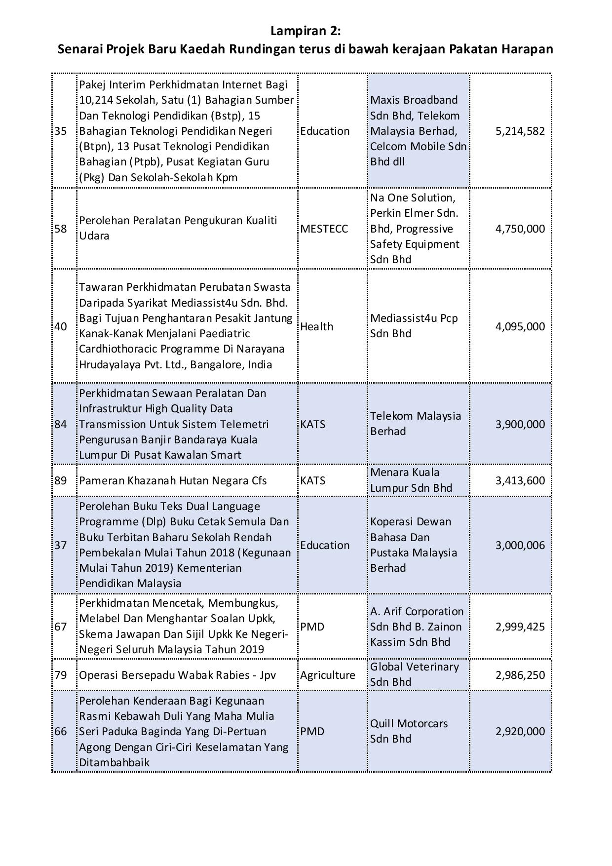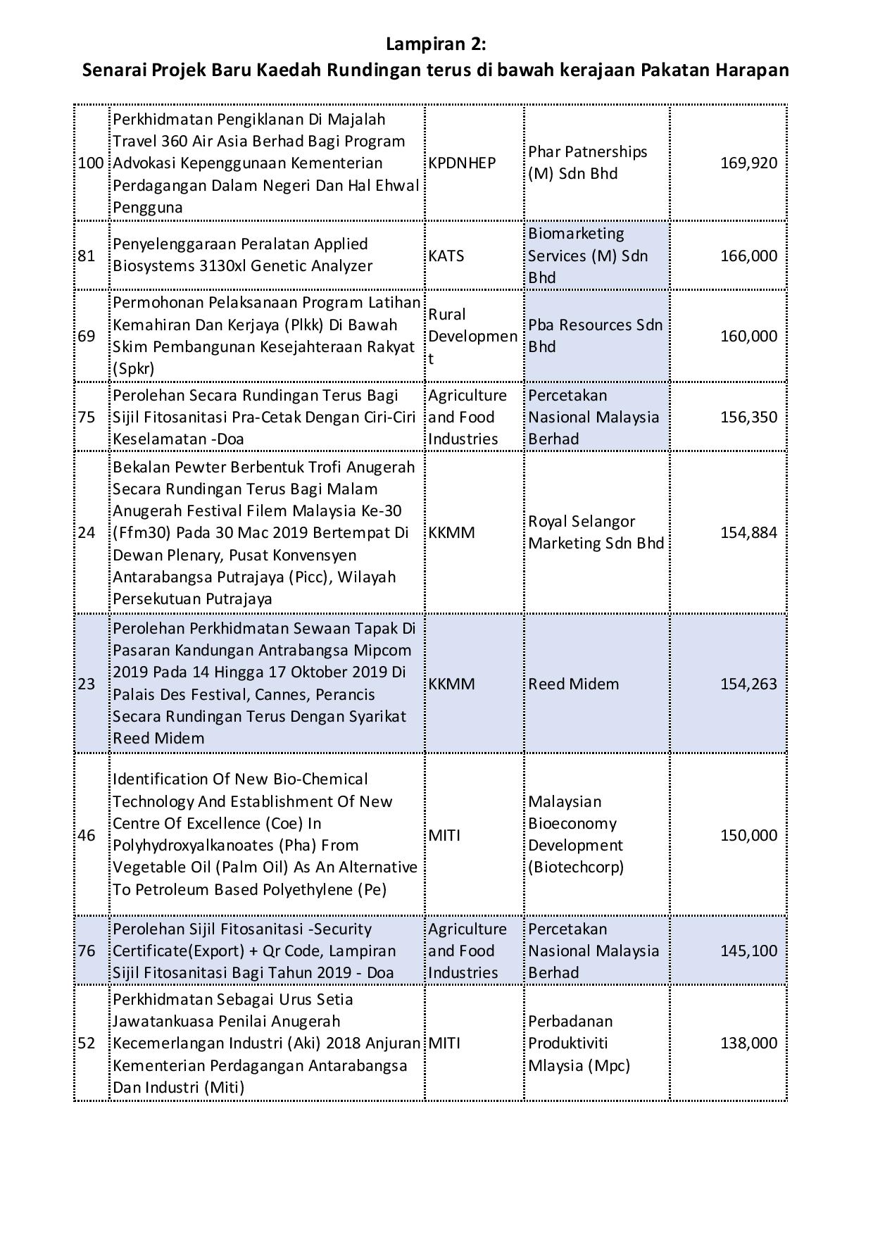 - Azmin Ali, Menteri Hal Ehwal Ekonomi, nilai keseluruhan kontrak RM1.2 juta.
