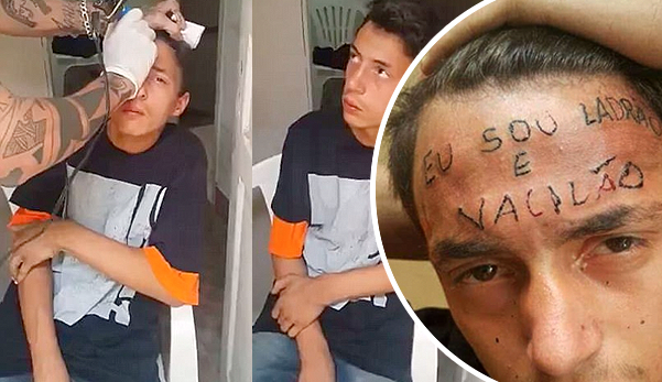 BRAZIL – Seorang remaja ditangkap kerana mencuri pastinya akan menyesal dengan perbuatannya itu seumur hidup selepas dahinya dicacah dengan tatu, “Saya adalah pencuri’.