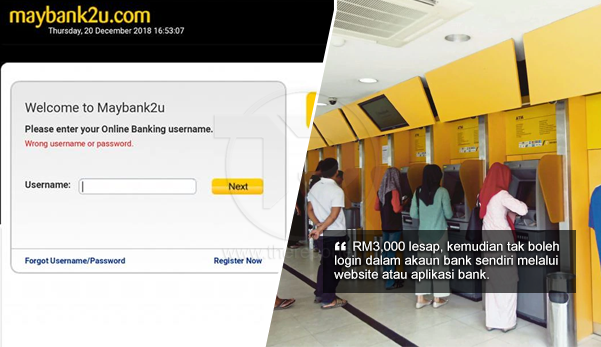 “RM3,000 lesap!” demikian dakwa seorang pemegang akaun bank Maybank 20 Disember lalu selepas mendapati sejumlah besar wang berkenaan hilang dari akaun banknya secara tiba-tiba.