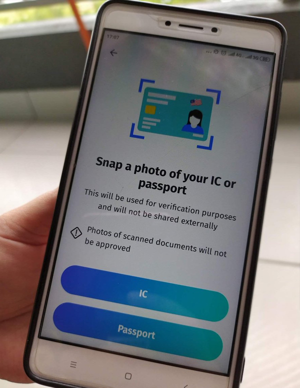 Langkah 3 : Snap gambar IC dan selfie korang. Jangan risau yang ni just nak pastikan korang pemegang IC tu je.