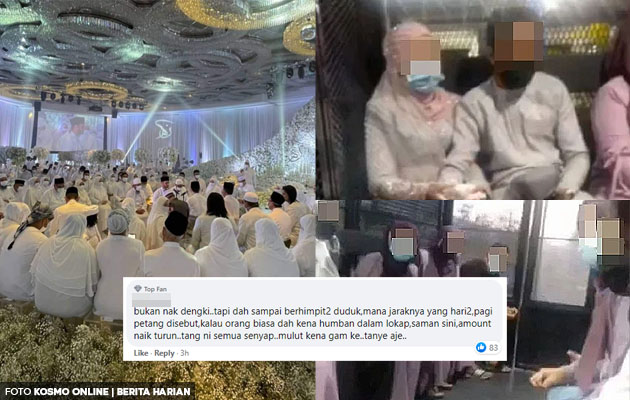 Pasangan selebriti yang mengadakan majlis pernikahan di hotel terkemuka di Kuala Lumpur itu pula, tetamunya dilihat duduk merapati antara satu sama lain ketika majlis sedang berlangsung.
