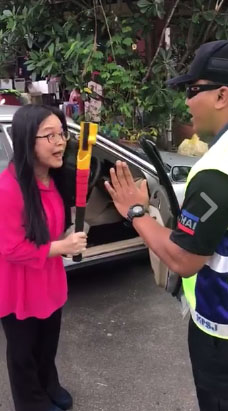 Kata-kata anggota itu membuatkan wanita berkenaan terdiam seketika dan berkata, “Adakah you normal ke tak normal? Suruh saya parking di tengah jalan?”.