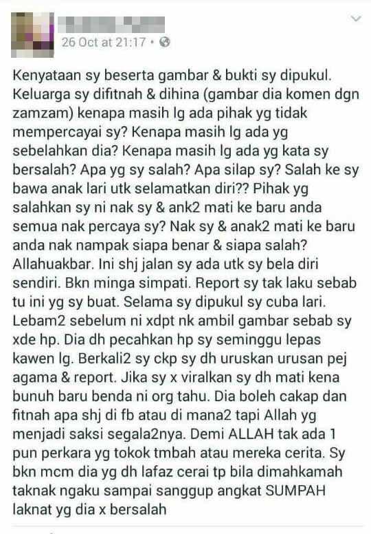 Mangsa kecewa orang ramai menyebelahi suaminya – Foto Netizen