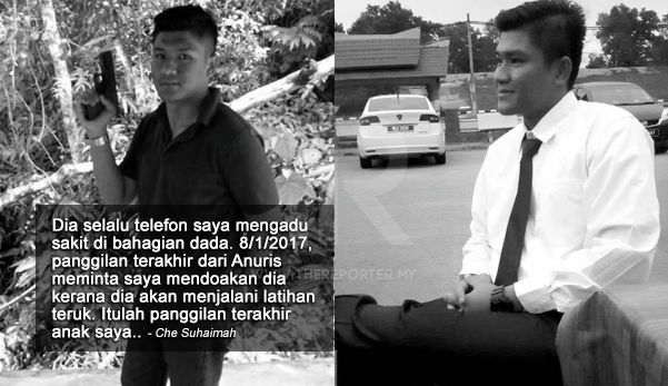 Selepas diploma, dia buat praktikal di Balai Polis IPD Gerik selama dua bulan. Selepas itu bertugas sebagai guard bersenjata di Hospital Selayang. Sebelum masuk ke Pulapol Air Hitam, Jempol, Negeri Sembilan, Anuris telah beberapa kali menjalani medical check up di hospital kerajaan. Sebelum masuk Pulapol, Anuris aeorang anak yang sihat walafiat, bertubuh sado dan ceria. Anuris anak kesayangan saya tidak pernah ada penyakit sawan, malah keturunan dia tak ada sawan. Macam mana anak saya boleh mengalami kecederaan organ seperti paru-paru berair dan jantung bengkak?