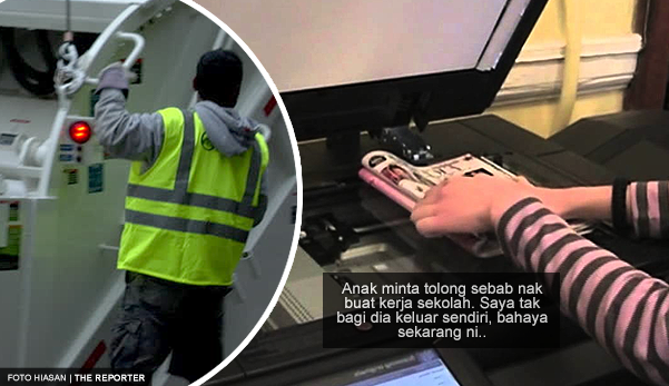 “Kak, saya nak ini satu, ini satu,” katanya sambil menunjukkan helaian yang hendak dibuat salinan.