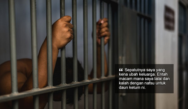 “Masa tu saya tekad nak buktikan saya berjaya…entah macam mana saya lalai dan kalah dengan nafsu untuk daun ketum ni…masa awal kena tahan dulu pun saya bagaikan tersentap dan tidak percaya. Cuba juga buka gari tetapi tidak berjaya kerana terlalu ketat dan sakit,” katanya dengan suara sebak dan hiba.