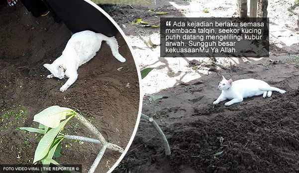 “Ada kejadian berlaku semasa membaca talqin, seekor kucing putih datang mengelilingi kubur arwah. Sungguh besar kekuasaanMu Ya Allah.