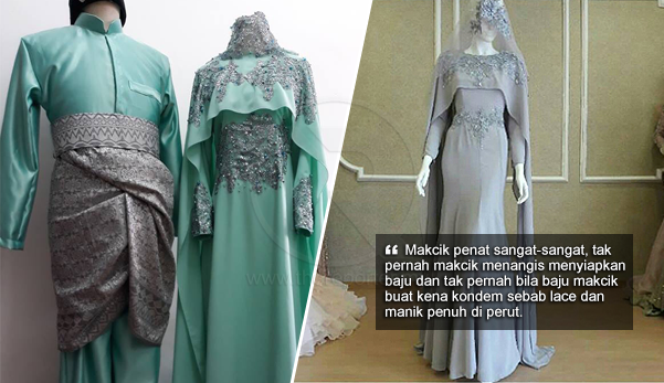 “Makcik penat sangat-sangat, tak pernah makcik menangis menyiapkan baju dan tak pernah bila baju makcik buat kena kondem sebab lace dan manik penuh di perut.