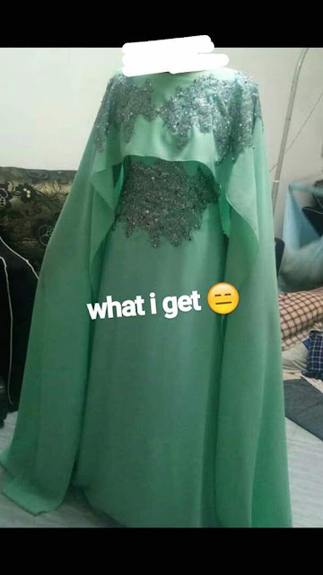 Sementara itu, seorang netizen pula memuat naik gambar rekaan asal yang dikehendaki oleh pengantin berkenaan yang didakwa sangat jauh berbeza dengan hasil buatan Mimiey.
