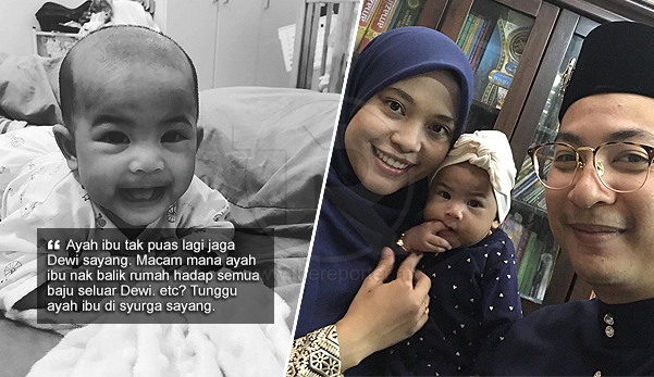“Tugas ayah ibu dah selesai ye Dewi. Kami dah cuba jaga Dewi sebaik mungkin, provide semuanya. Sampailah ibu mandikan jenazah Dewi dan ayah sambut di liang lahad. We missed you princess. Mainlah di taman syurga sana sayang.
