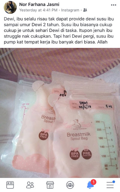 “Dewi Faleesya anak ayah, susu ibu tak kering lagi. Ayah sedih tengok ibu terpaksa perah susu tapi Dewi dah tak ada.