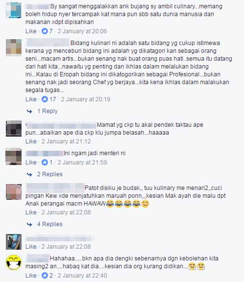 KUALA LUMPUR – Kenyataan seorang netizen mengenai bidang kulinari dikecam ramai pengamal kulinari baru-baru ini. Mana tidaknya, lelaki itu mendakwa mereka yang mengambil bidang kulinari ini selalunya golongan yang waktu sekolah tak habis belajar betul.