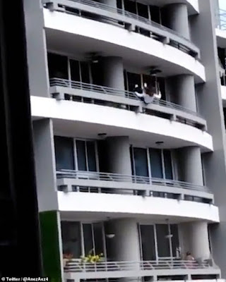 Menurut siasatan awal pihak polis percaya ibu kepada dua anak itu hilang keseimbangan disebabkan oleh angin kencang, menyebabkan mangsa terjatuh.