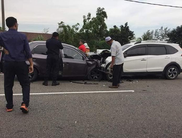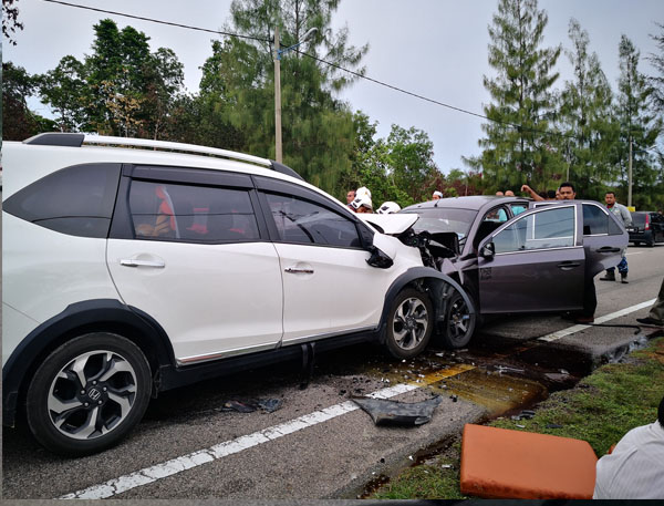 Dalam kejadian yang berlaku pada awal pagi Isnin di hadapan SK Lembah Bidong, Terengganu, pemandu kereta Proton Saga meninggal dunia di tempat kejadian selepas dirempuh kereta Honda BRV.