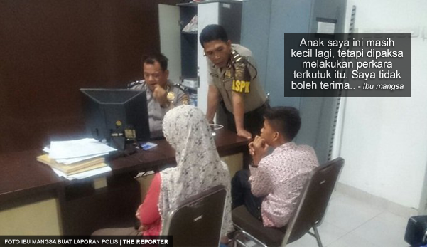 “Anak saya ini masih kecil lagi, tetapi dipaksa melakukan perbuatan terkutuk itu. Saya tidak boleh terima,” katanya.