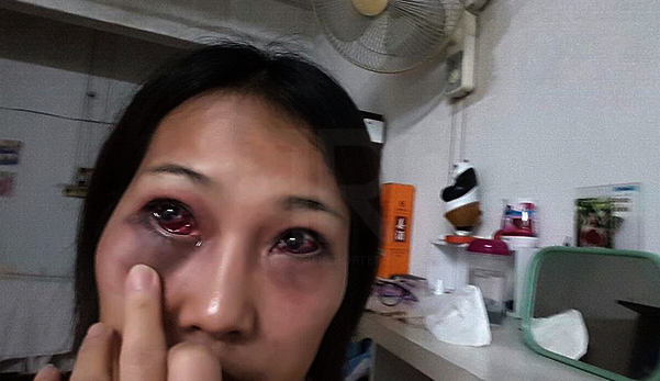“Akibat dipukul, saya mengalami sakit serta lebam-lebam di bahagian muka kiri dan kanan, leher serta bengkak di bahagian belakang kepala,” katanya.