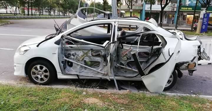 Dalam kejadian jam 4.40 petang Jumaat lalu di Jalan Subang Mas, Taman Pinggiran USJ1, Subang Jaya, kereta Toyota Viosnya juga mengalami kerosakan teruk.