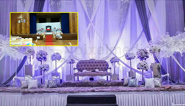 Pelamin yang saya minta ini banyak menggunakan kain putih dan bunga putih.