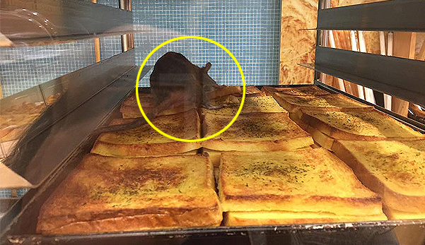 | Penemuan seekor tikus di ruangan penyimpanan roti di Komugi MidValley – Foto Melon Roux |