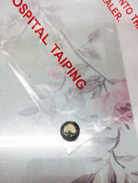 Bila mereka periksa, kelihatan seperti ada batu dalam hidung. Jadi, doktor cuba korek tetapi benda itu tak dapat keluar lalu dibawa untuk pergi buat x-ray dan ternampaklah ada benda bulat. Doktor kata, mungkin bateri jam.