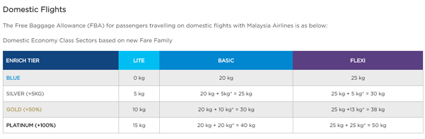 Berdasarkan jadual terbaru yang dimuat naik di laman MAS, penerbangan domestik bagi kelas Economy Lite, tidak lagi menerima bagasi daftar masuk percuma.
