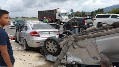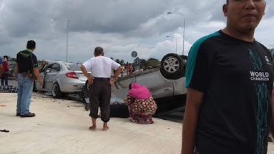 Pemandu dan penumpang kedua-dua buah kereta cedera parah dan pemandu Volkswagen Vento tidak mengalami kecederaan.